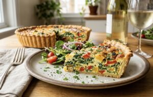 パイやタルト生地に卵、生クリーム、チーズ、野菜、ベーコンなどを混ぜた卵液(アパレイユ)を流し込み、オーブンで焼き上げた「食事系タルト」です。