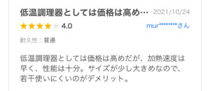 貝印低温調理器に対して、私がデメリットは⏬です😭