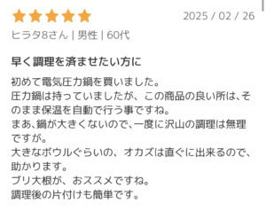 勘違いする方も多いかもしれませんが圧力調理は時短ではありません