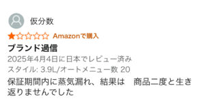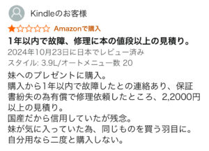 残念ですが、壊れやすいはどんな家電でもみられる低評価レビューです👎