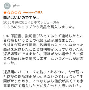 商品の悪い口コミ