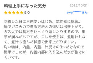 高評価レビューは⏫のようなことが評価されていました🙌