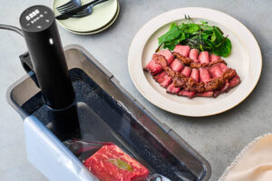 低温調理とは、100℃未満の一定温度(恒温)の水中で、フリーザーバッグなどに入れた食材を長時間じっくりと加熱する調理方法です。