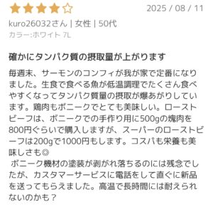 ほんの一部を抜粋させていただきましたが、他の⭐️5のレビューも調理の出来栄えを評価しているものがほとんどでした
