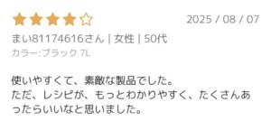 これだけ調理に関して良いレビューが多いのは⏫のような特徴があるからだと思います