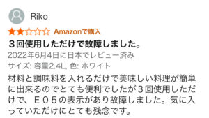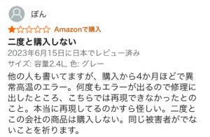 残念ですが、壊れやすい・初期不良があるはどんな家電でもみられる低評価レビューです👎