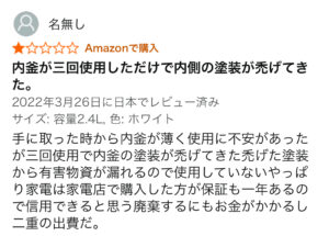 商品の悪い口コミ