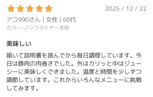 このような変化点はありますが、COSORI PRO LEは充分な調理の性能があると思います