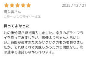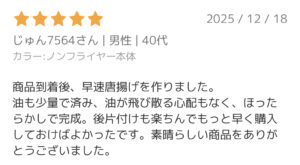 ・油ほぼゼロで揚げ物ができる