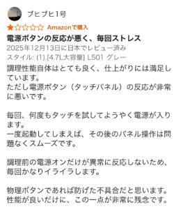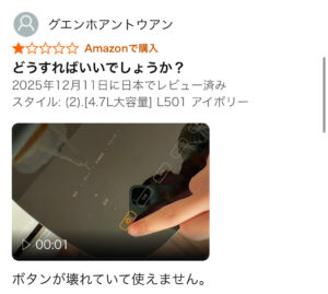 また残念ですが、壊れやすい・初期不良があるはどんな家電でもみられる低評価レビューです👎