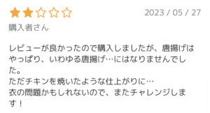 油でカラッと揚がってジューシーな唐揚げを想定して食べると違和感を感じるかもしれません