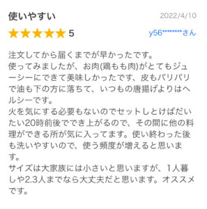 ですが、ノンフライヤーとしての性能的には充分だと思います