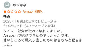 また残念ですが、壊れやすい・初期不良があるはどんな家電でもみられる低評価レビューです👎