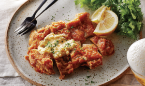 ② 鶏肉の表面に薄力粉をまぶし、溶き卵をからめる
