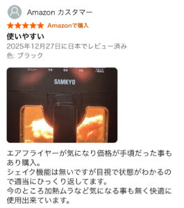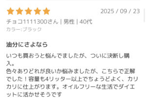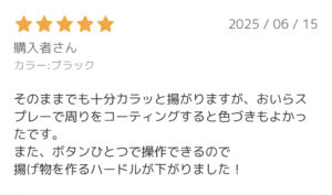 加えて紹介すると、ノンフライヤーとしての性能的には充分です