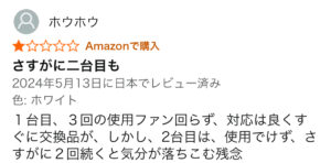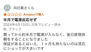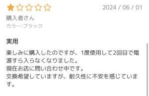 残念ですが、壊れやすい・初期不良があるはどんな家電でもみられる低評価レビューです👎