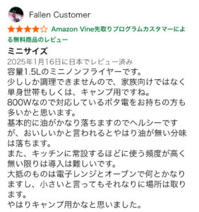 いくつかこのサイトでノンフライヤーを紹介していますが、最小サイズですね🐜