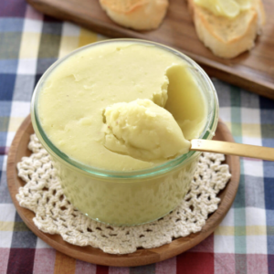 5.ミキサーやブレンダーで1分ほど撹拌する。パンにつけたり、パイやパンのフィリングでいただく。