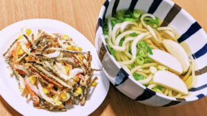 うどんにかき揚げ1つ付いているだけでものすごく豪華に見えるんですよね😂