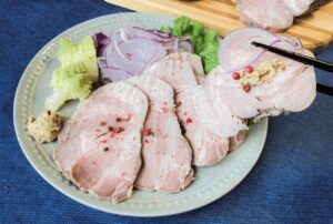 6. ロースハムを取り出し、お好みの厚さにスライスする。